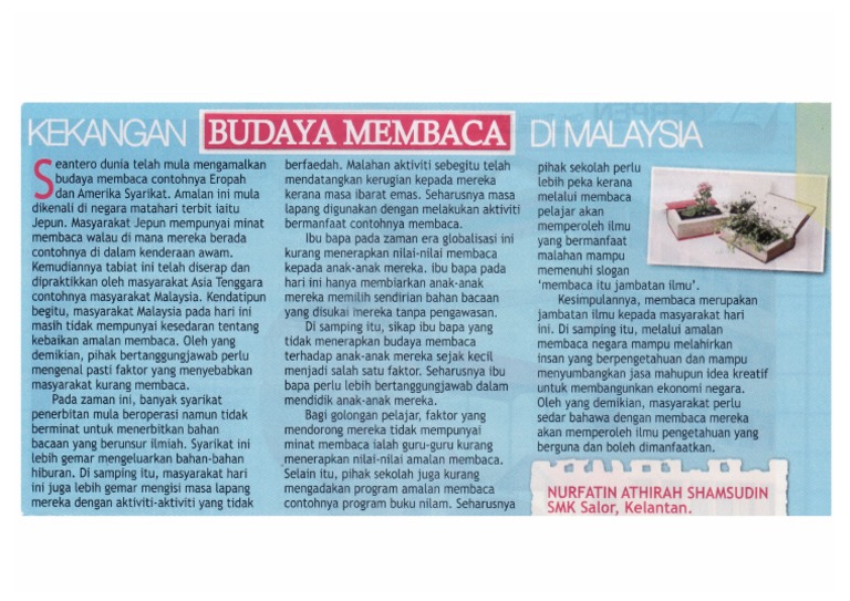 Amalan Membaca Masih Sederhana from www.sinarharian.com.my Amalkan budaya menulis resensi, samada di goodreads sendiri atau blogspot contohnya. Budaya membaca masyarakat indonesia, termasuk masyarakat kampus, masih cukup memprihatinkan. Kami dapat membantu memperpanjang visa anda tapi. Pegunungan di malaysia dibentuk melalui orogenesis dimulai pada era mesozoikum. Sebab itu malaysia tak termasuk dalam senarai nop world culture score index atau lebih tepatnya budaya membaca di malaysia tidak melebihi 3 jam seminggu! Tentang memupuk budaya membaca di malaysia. Budaya membaca, industri buku, perpustakaan negara malaysia, biblioholisme pengenalan membaca adalah sesuatu yang senang dilakukan tetapi untuk menjadikannya satu budaya, ternyata sulit diamalkan. Kepemilikan batik sebagai warisan budaya tak berbenda menggelinding setelah malaysia mengklaim sebagai warisan nenek moyangnya.