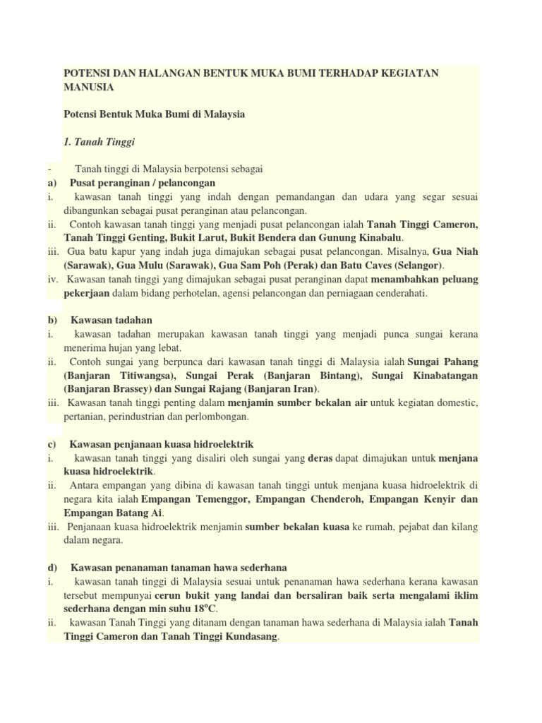 Halangan Kawasan Tanah Pamah from i2.wp.com Terdapat beberapa kepentingan tanah pamah dan dataran di malaysia iaitu: Ketinggiannya kurang daripada 200 m. Kawasan tanah pamah di malaysia terletak di lembah sungai dan berhampiran dengan laut. Penanaman kelapa sawit dan getah membantu menyediakan _ kepada penduduk setempat. Hal ini kerana ketiadaan petak lonjak pada waktu ini. Kawasan ini meliputi ketinggian kurang daripada180 meter dari aras laut. Study flashcards on potensi kawasan tanah pamah (pg 65) at cram.com. Kawasan tanah pamah di malaysia kurang daripada 200 meter.