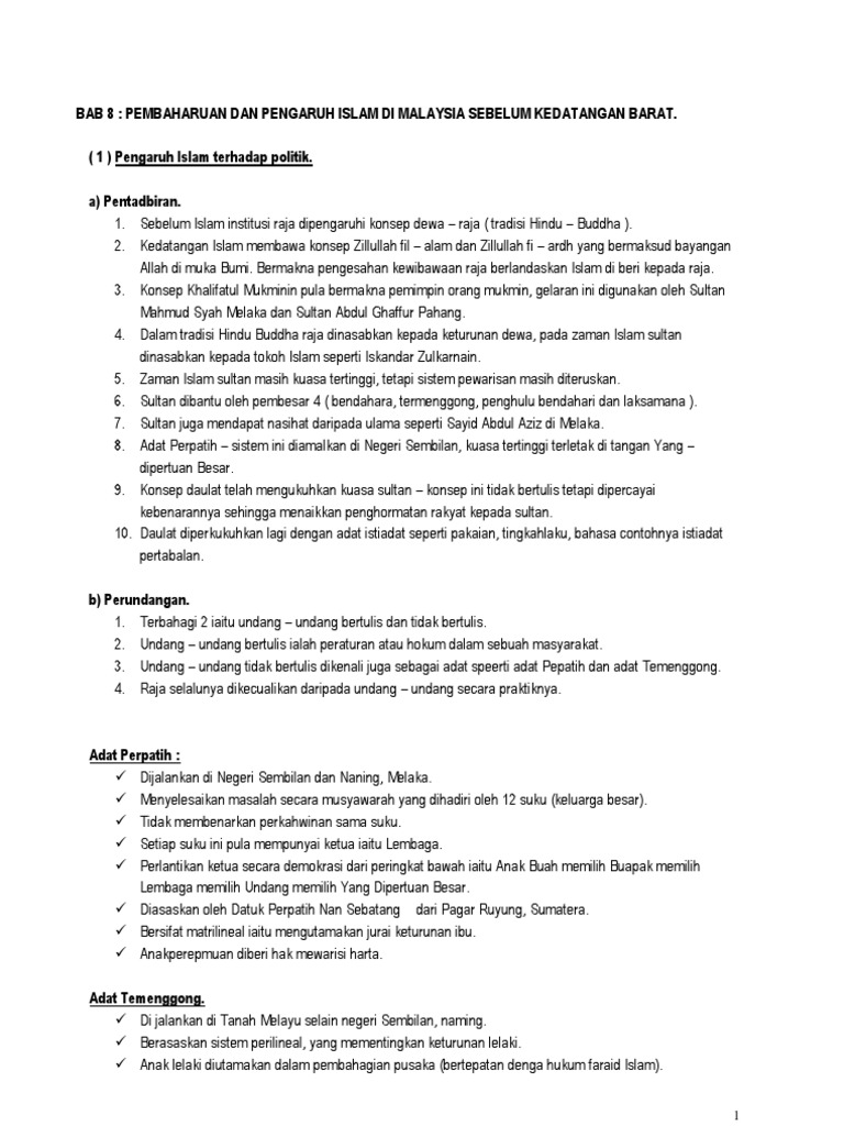 Nota sejarah tingkatan 4 bab 8 pembaharuan dan pengaruh islam di malaysia sebelum kedatangan barat rungus my.
